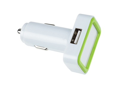 This dual-port ABS plastic USB car charger provides 5V, 1000ma output for your charging needs.