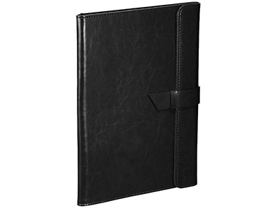 Exclusive design padfolio with faux suede interior lining. Exterior flap with tab and loop closure. Interior tablet pocket accommodates up to 10" tablets including all versions of iPad Air and Samsung Galaxy. Scratch proof lining protects your tablet. Interior organizer with document pocket and business card slot. Elastic loops to hold a smartphone and (stylus) ballpoint pen. Includes 30 sheet writing pad. Packed in a Balmain gift box.