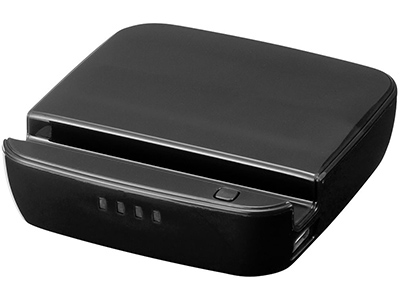 2200 mAh power bank with integrated smartphone stand provides enough capacity to charge your smartphone. Stand holds the majority of smartphones. Includes charging cables and white carton box.