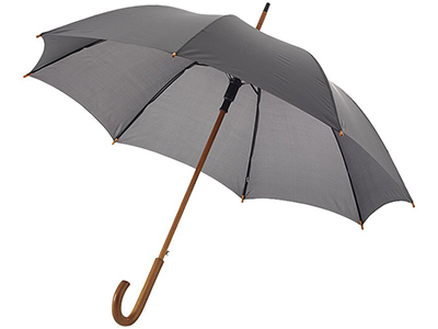 23" automatic opening umbrella with wooden shaft wooden handle and metal ribs.