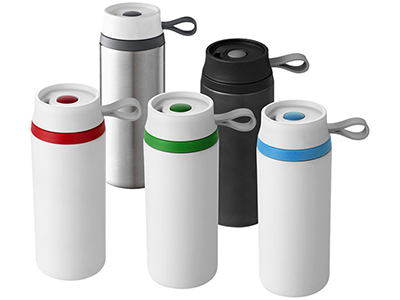 The flow tumbler is a double wall foam insulated tumbler. It is equipped with a single-hand, screw-on push button lid with a non leaking function to make sure your drink stays put. The silicone pad on the bottom makes the tumbler skid-proof. Volume is 350ml. Red Dot winner 2014 and IF Award Winner 2014. Presented in a gift box. Exclusive design.
