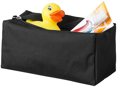 Toiletry bag with zipper closure main compartment.