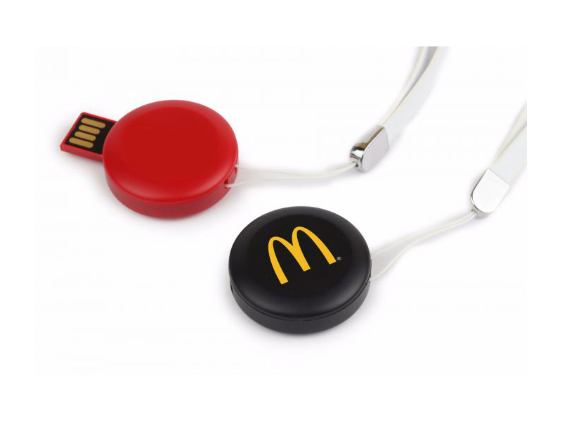 The circular shaped body twists smoothly to reveal the USB connector, and it comes with a handy strap to attach to a lanyard or keyring.