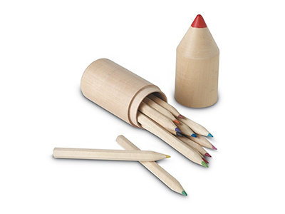 12 wooden pencils in pencil shaped wooden box.