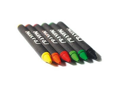 Set of 6 wax crayons in natural carton box. Non-toxic.