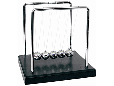 • Newton's Cradle is a clever device that not only demonstrates a pendulum, but also shows the Laws of Conservation of Momentum and Energy.