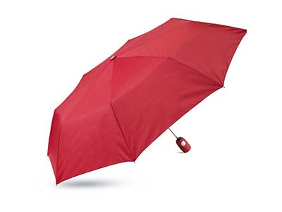 Automatic opening 3-fold umbrella in 190T polyester. Presents a matching colour pouch and handle in rubberized finish with logo plate. 8 panels.