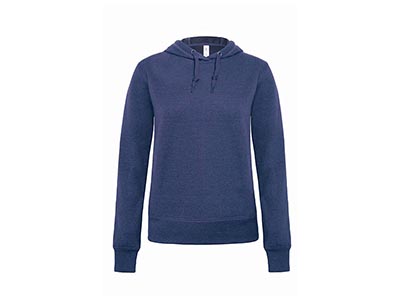 Feminine cut, hood with drawstring made of darker tape and metallic eyelets, cuffs and bottom hem in 1x1 rib, shoulders and armholes with flatlock topstitch, modern side pockets in double needle topstitch with jersey pocketing. 280 g/m², 50% cotton, 50% polyester black, brushed inside.