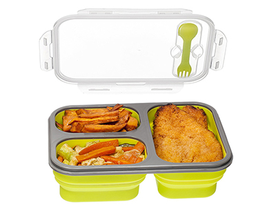 • Collapsible 3-compartment design with Snap-lock Propylene lid, Lid seals tightly to keep products fresh in this bento box.