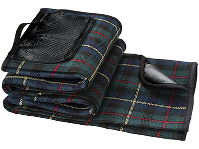 Classic blanket with tartan pattern. The backing protects against water and dirt. The handle makes it easy to carry this blanket.