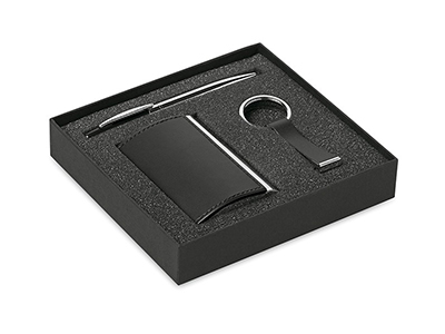 • Business gift set including metal twist ball pen, zinc alloy with PU keyring and card holder.